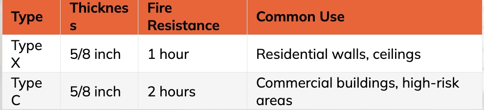 We use fire-rated drywall that contains non-combustible materials, such as fiberglass, within the core. This design helps slow the spread of flames and smoke during a fire.