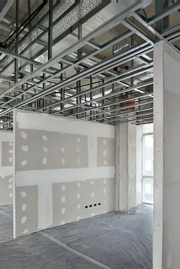 In spaces where sound quality matters, we integrate acoustic panels directly into the drywall system. These panels absorb echo and reduce sound reflections, making speech and music clearer.
